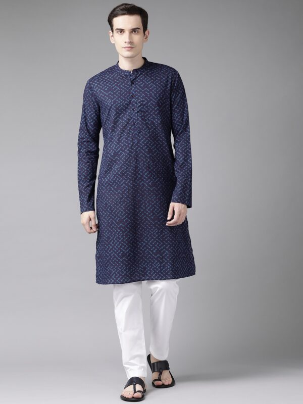 Men Beige And Black Hand Block Print Sustainable Straight With Kurta Pyjama