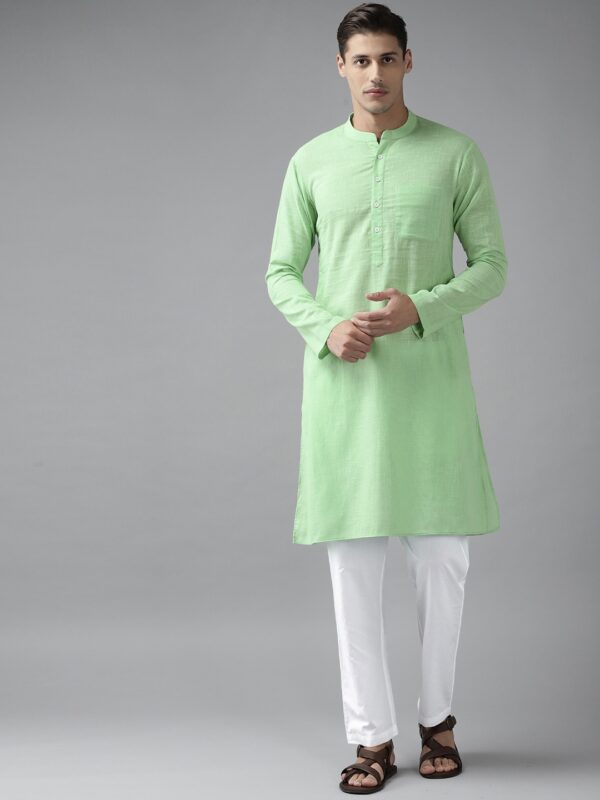 Men Green Cotton Straight Kurta with Slub Effect With Pyjama