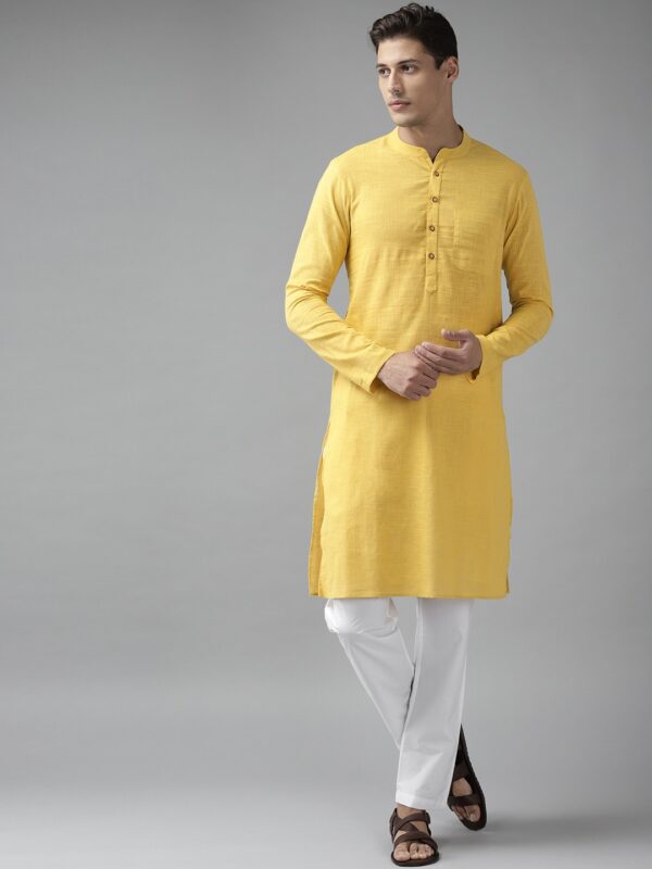 Men Yellow Cotton Straight Kurta with Slub Effect With Pyjama