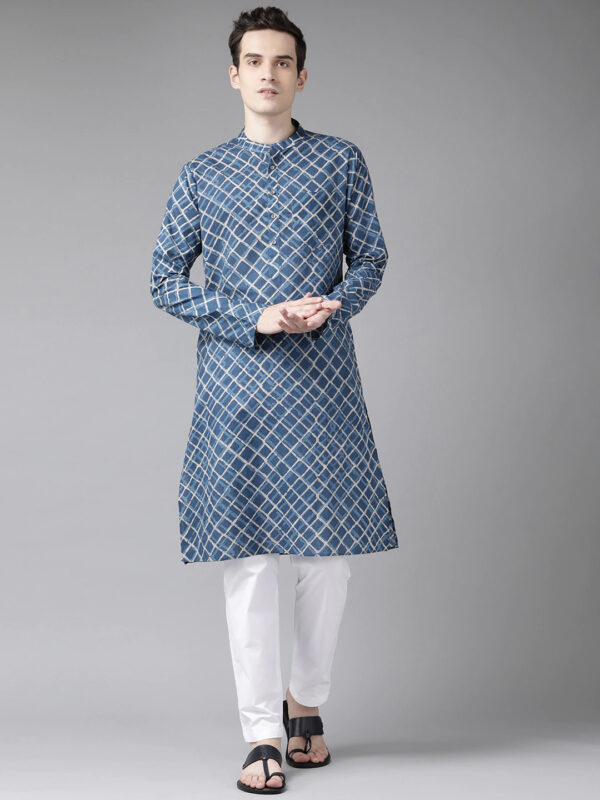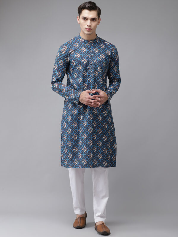 Men Blue And Beige Printed Straight With Kurta Pyjama