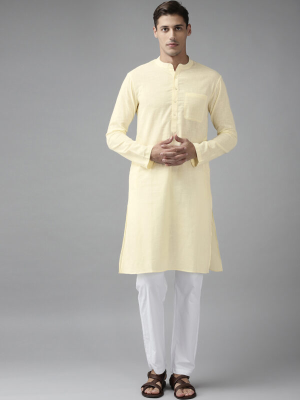 Men Cream Cotton Straight Kurta with Slub Effect With Pyjama