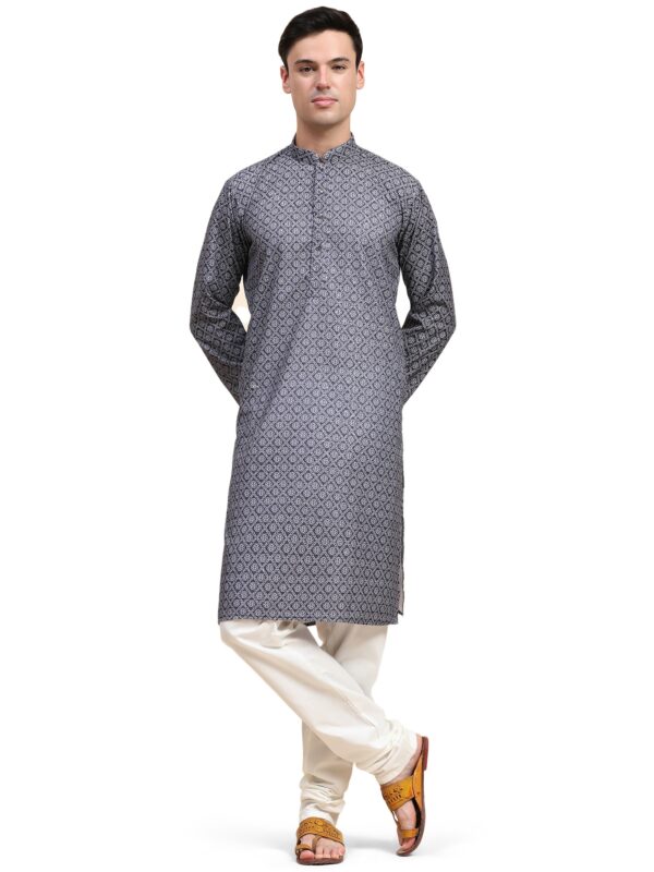 SKAVIJ Men?s Sequined Kurta and Pajama Set Traditional Indian Dress Grey_Large