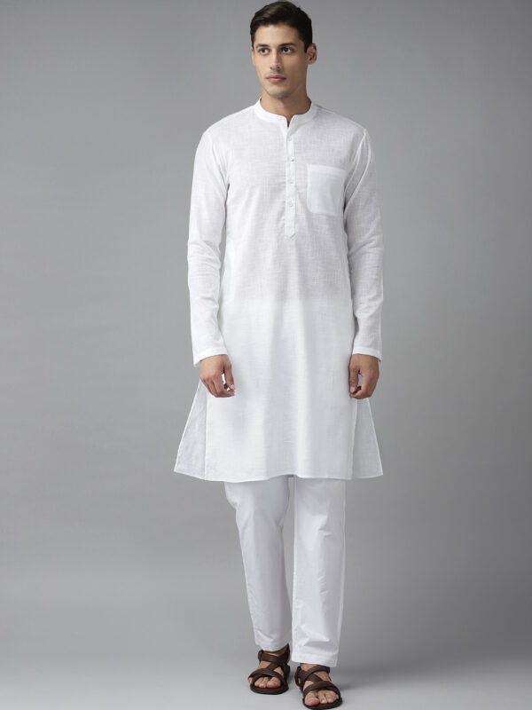 Men Cream Cotton Straight Kurta with Slub Effect With Pyjama