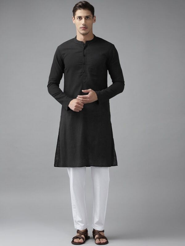 Men Black Cotton Straight Kurta with Slub Effect
