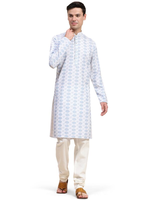SKAVIJ Men?s Sequined Kurta Pajama Ethnic Motifs Tunic Set Blue_Large