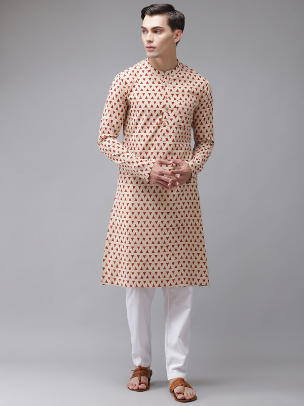 Men Peach & White Printed Straight Kurta